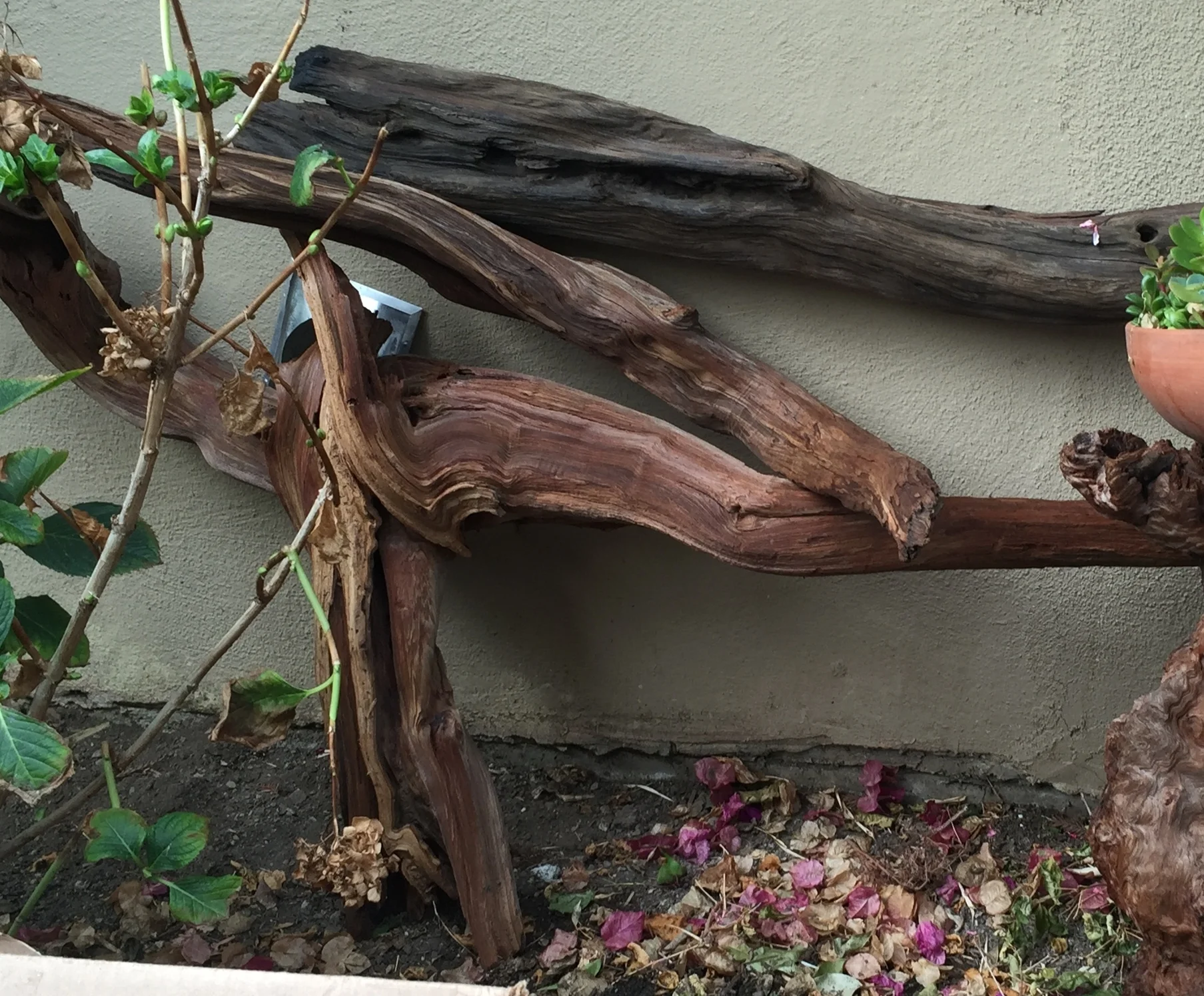 Redwood roots,burl and driftwood for garden art,accents and interior design.