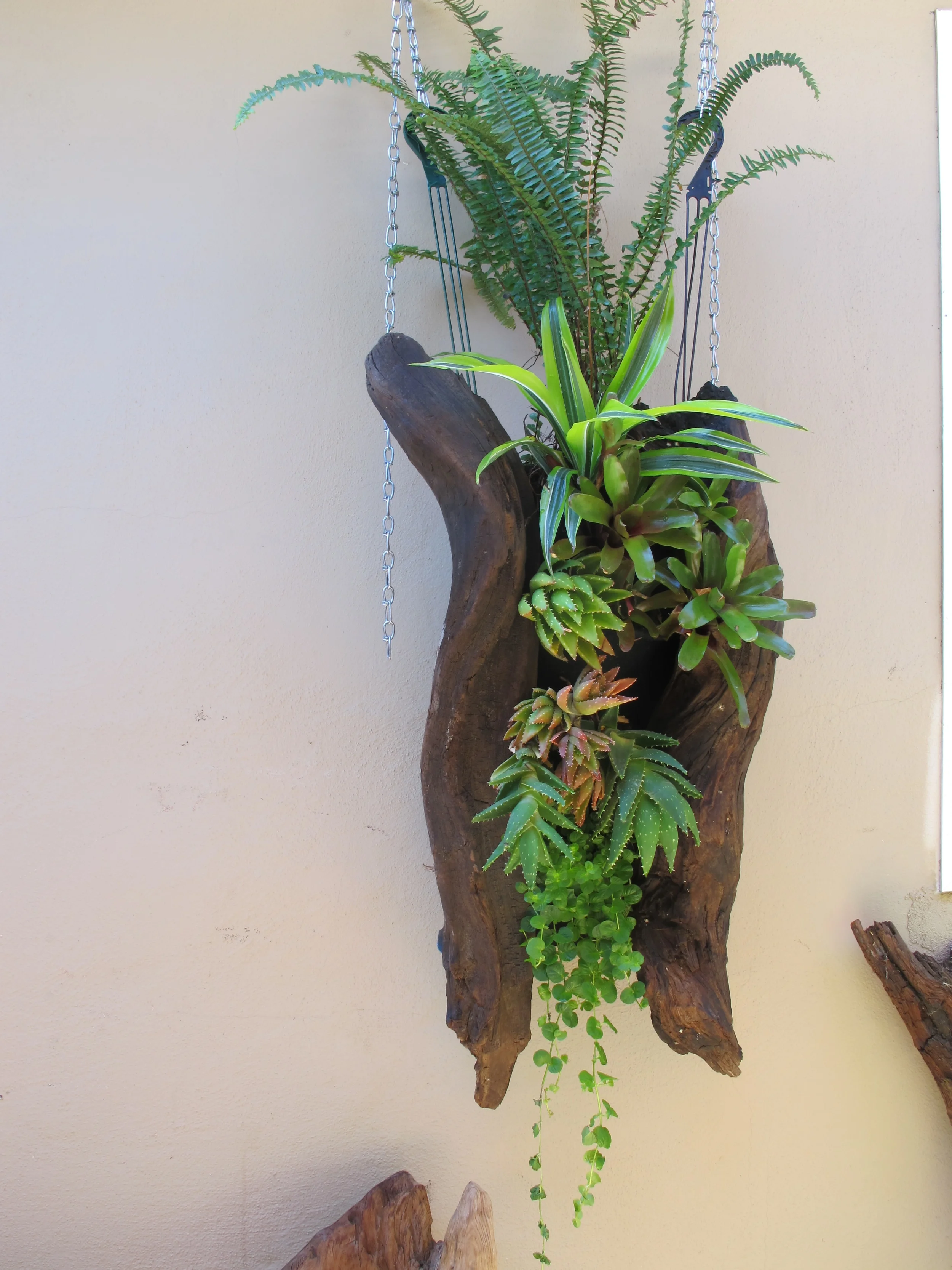 Redwood roots,burl and driftwood for garden art,accents and interior design.